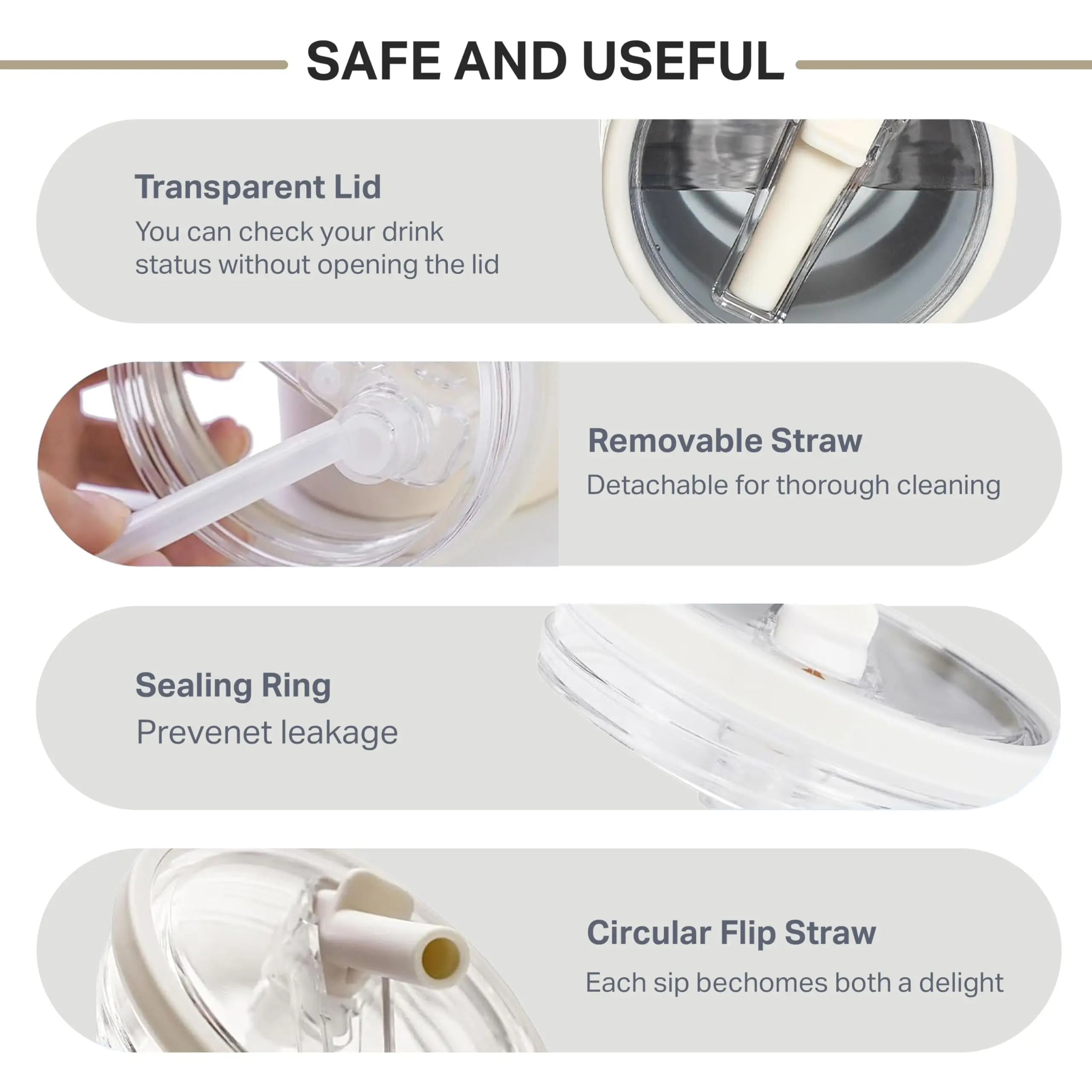 2.[Fashionable Combination]:our water bottle handle is equipped with advanced silicone safety ring and leather metal handle band, which has unparalleled safety while not easy to stain and easier to clean; the style bow decoration makes your cup stand out and is a fashionable accessory for your water bottle.